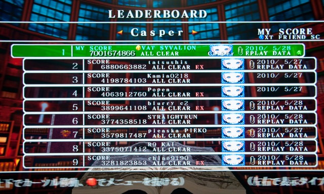アップロード時という縛りがあったりしますが、XBOX360版デススマイルズIIXのキャラ別でTOPとりました。